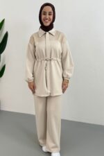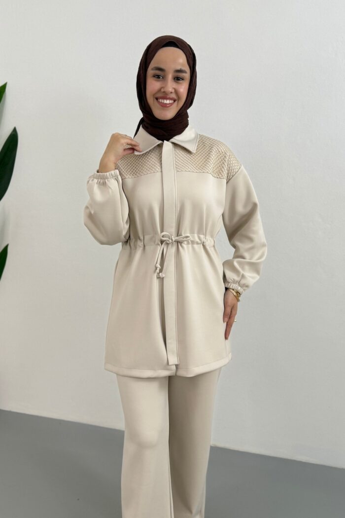 Afra File Detaylı Pantolonlu Takım-Krem