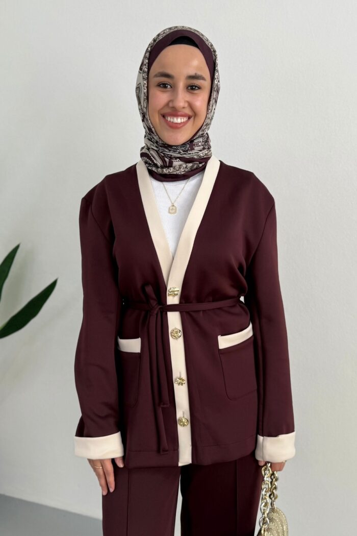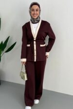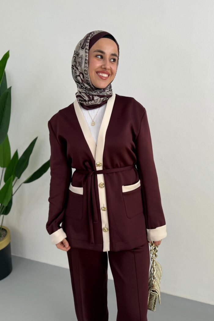 Nare Lina Pantolonlu Takım-Bordo