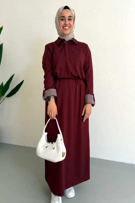 Beli Lastikli Cep Detaylı Lara Elbise-Bordo